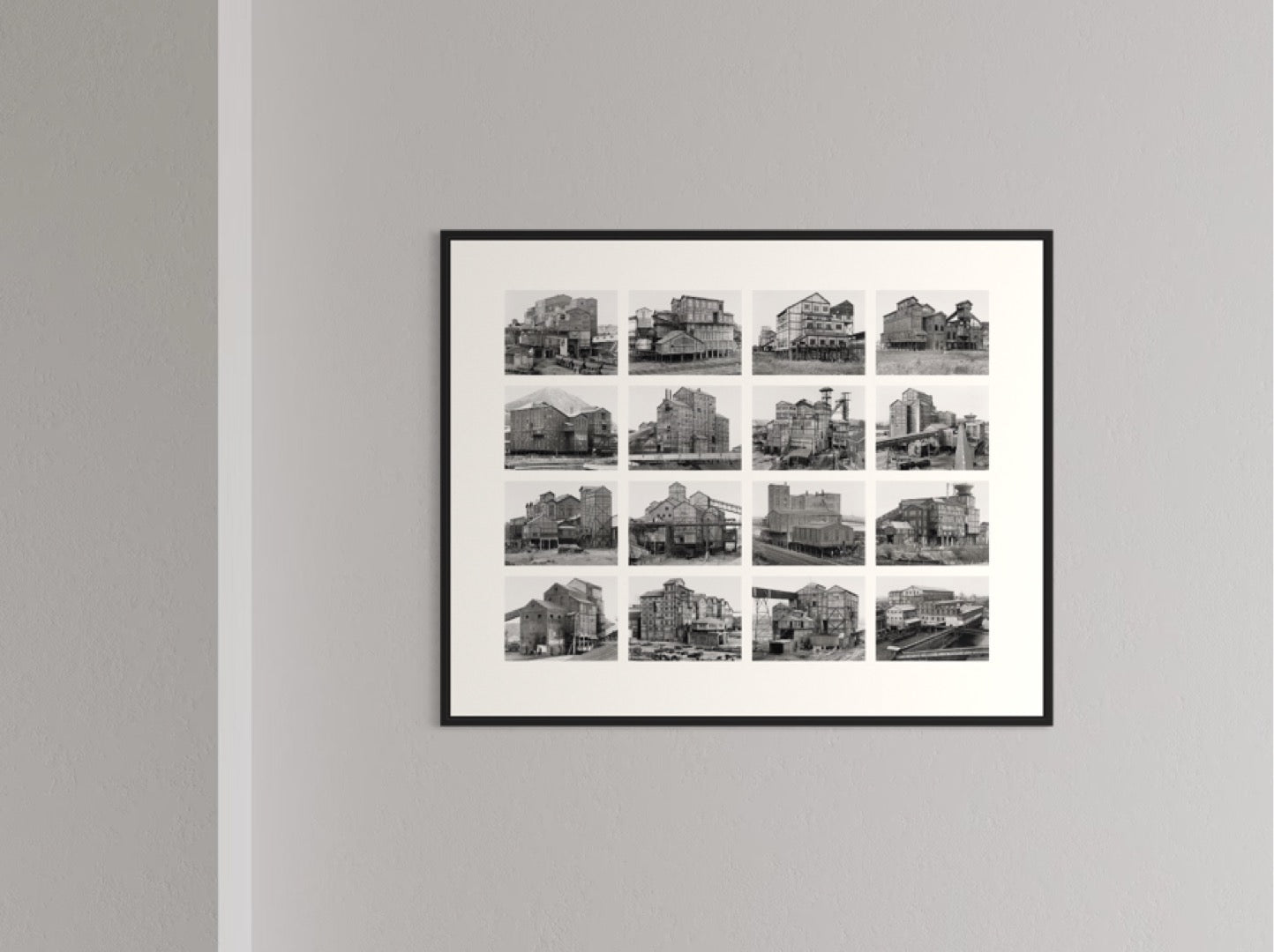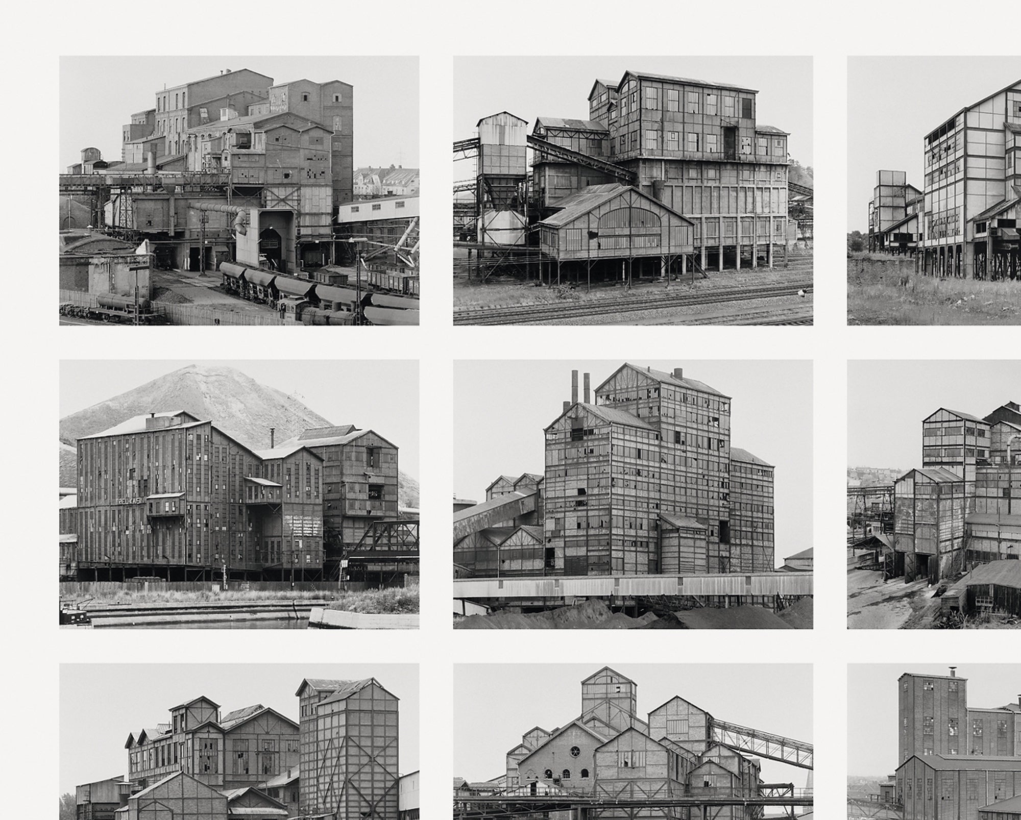 Their artworks capture a wide array of utilitarian structures such as water towers, coal bunkers, factories, silos, and gas tanks across Europe and North America. By photographing each subject in the exact same way—under overcast skies, using black and white film, and devoid of any human figures—they created a typology of industrial buildings that invites viewers to consider these forms as part of a larger artistic and cultural context. This consistent approach in their photo series not only highlights the formal qualities of these structures but also encourages a deeper engagement with the artwork itself, beyond the medium of photography. Their signature style of repetitive imagery and meticulous detail positions these everyday industrial forms as objects of beauty and historical significance.