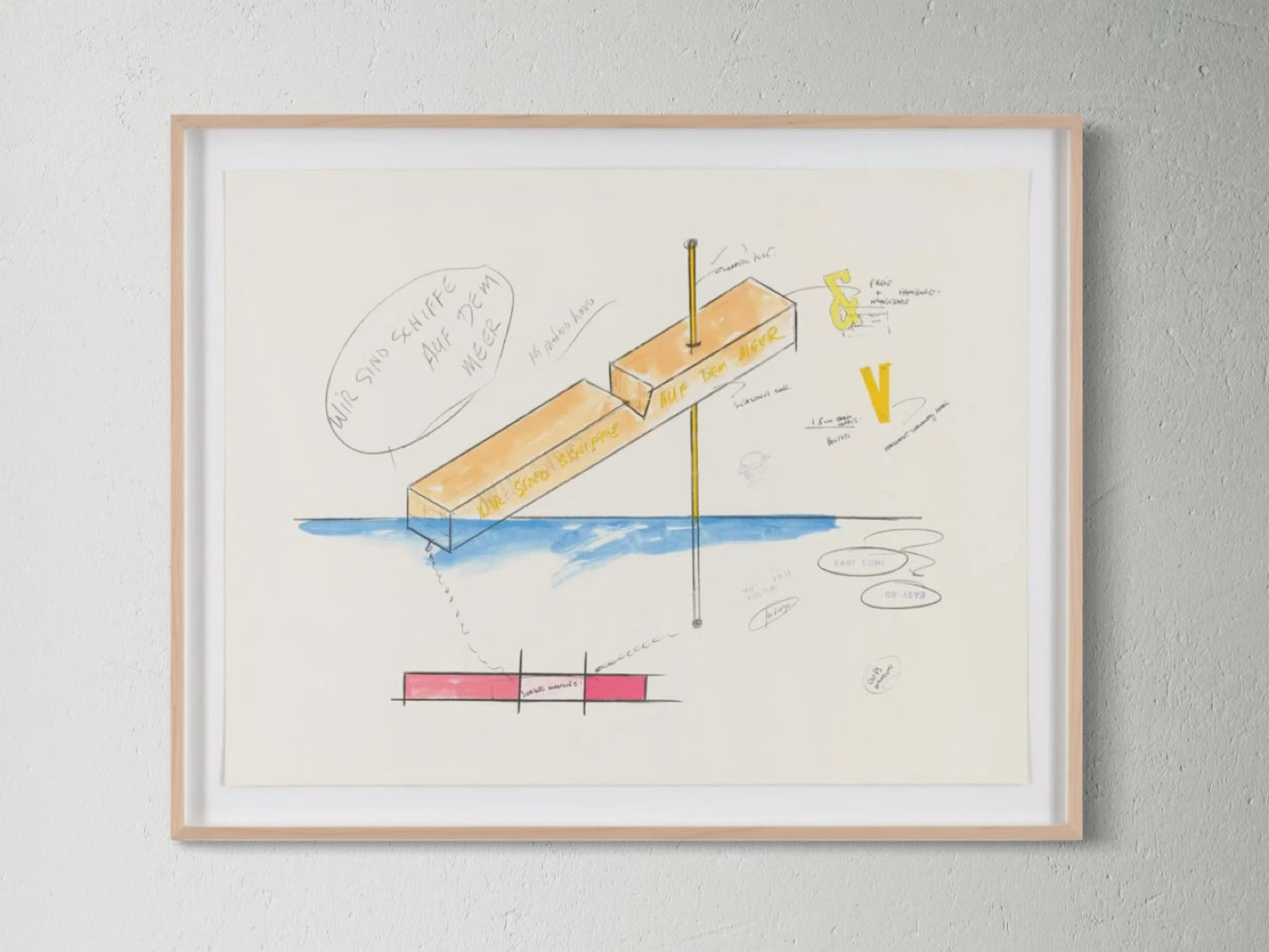 Lawrence Weiner’s prints and editions distill his conceptual approach into precise, poetic language—rendered with striking visual clarity. Each editioned artwork, available for sale, invites reflection on the relationship between text, meaning, and material, offering a concise yet powerful extension of his sculptural ideas.