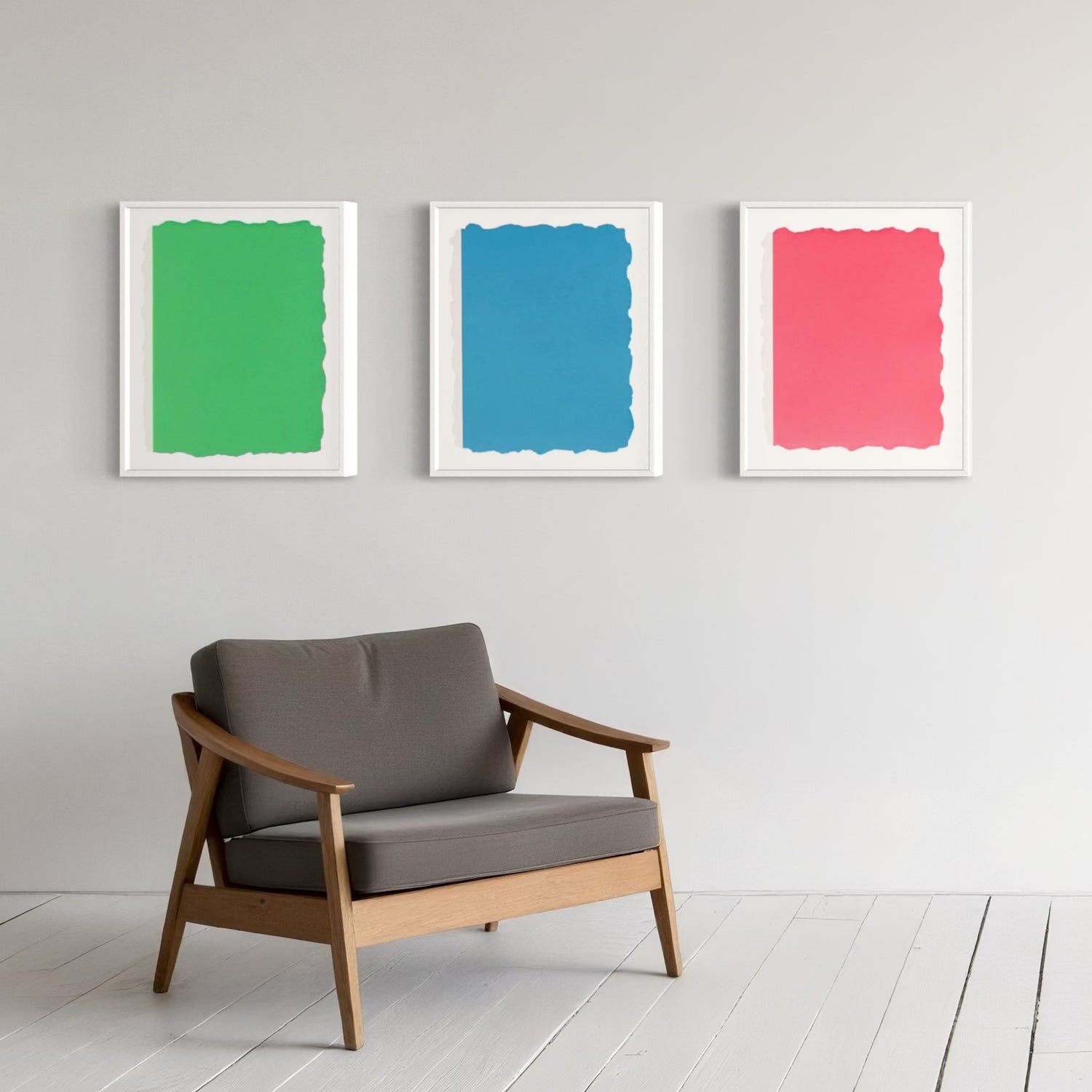 Though best known for his luminous sculptures, Flavin also extended his minimalist philosophy into printmaking. His prints feature geometric precision and restrained color, mirroring the structural and conceptual clarity of his installations. Through this medium, Flavin explored the tangible qualities of line and form, creating a thoughtful counterpoint to the ephemeral brilliance of his light-based works.